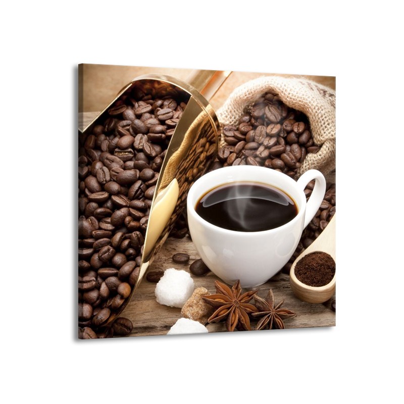 Canvas schilderij Koffie | Bruin, Wit, Goud | 70x70cm 1Luik