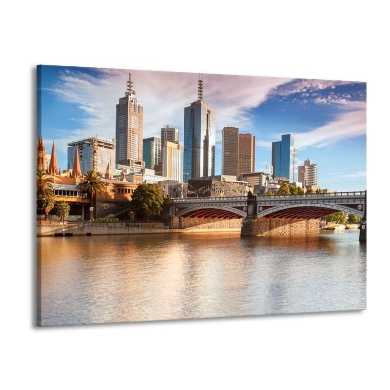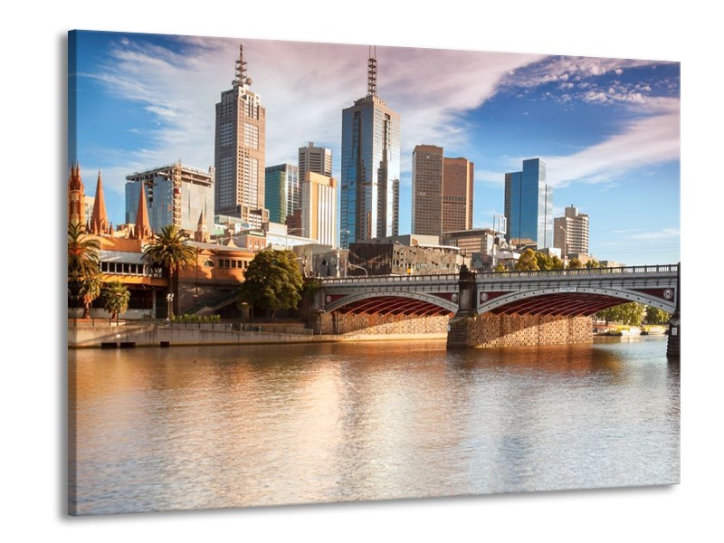Glas schilderij Wolkenkrabber | Grijs, Bruin, Blauw | 100x70cm 1Luik