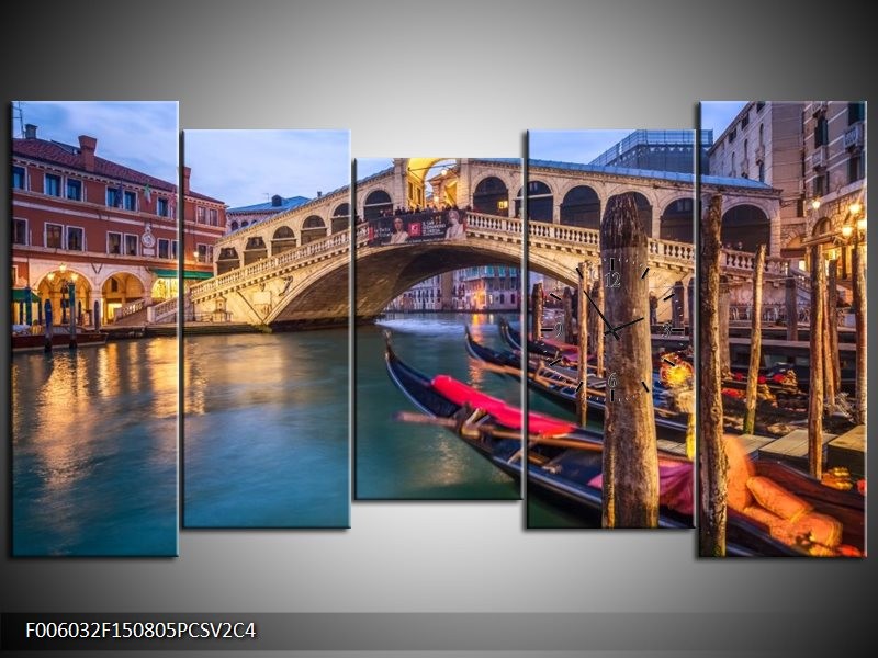 Klok schilderij Venetië | Blauw, Groen, Bruin | 150x80cm 5Luik