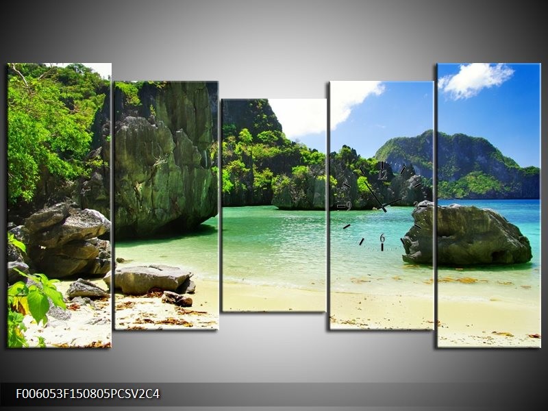Klok schilderij Natuur | Groen, Blauw, Wit | 150x80cm 5Luik