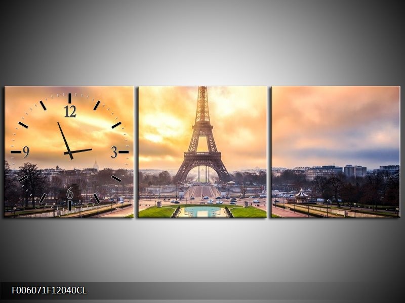 Klok schilderij Eiffeltoren | Grijs, Bruin, Groen | 120x40cm 3Luik