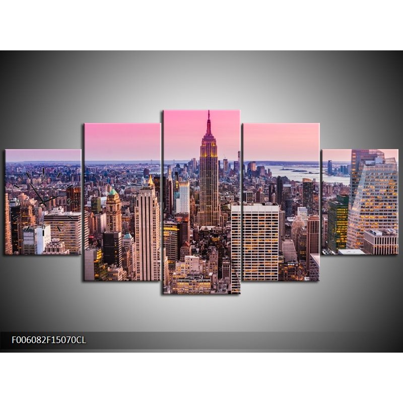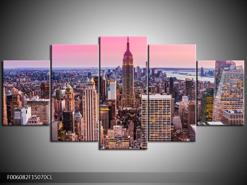Klok schilderij Wolkenkrabber | Paars, Roze | 150x70cm 5Luik