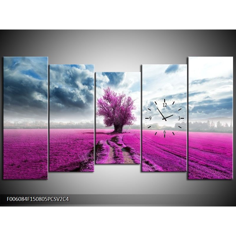 Klok schilderij Boom | Paars, Roze, Grijs | 150x80cm 5Luik