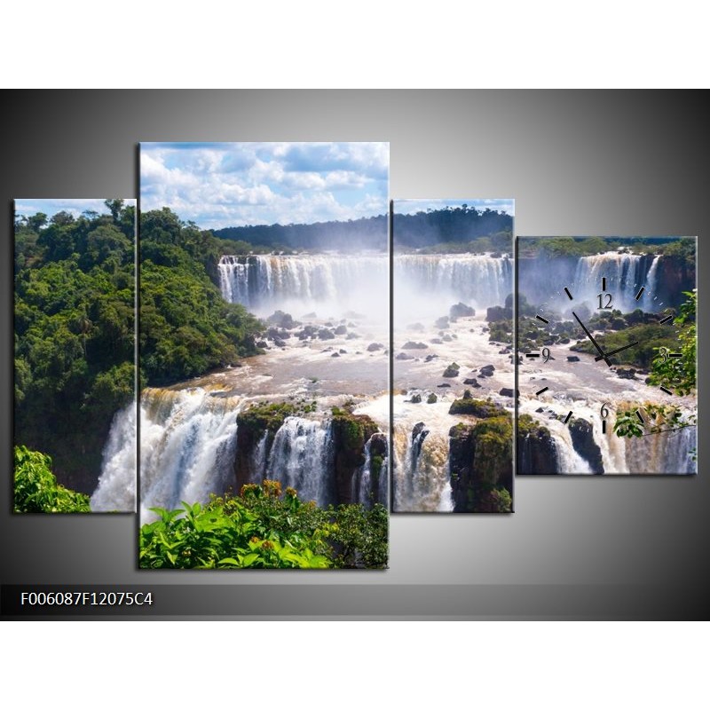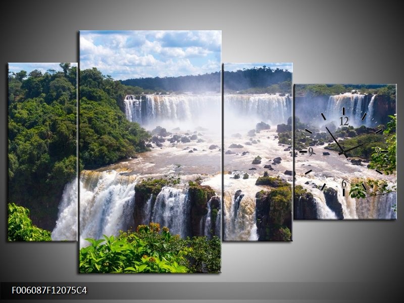 Klok schilderij Waterval | Grijs, Groen | 120x75cm 4Luik