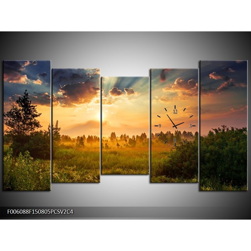 Klok schilderij Natuur | Bruin, Groen | 150x80cm 5Luik