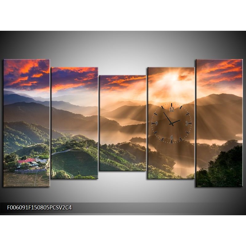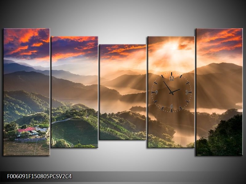 Klok schilderij Bergen | Oranje, Groen | 150x80cm 5Luik