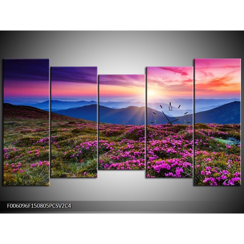 Klok schilderij Natuur | Paars, Roze, Blauw | 150x80cm 5Luik