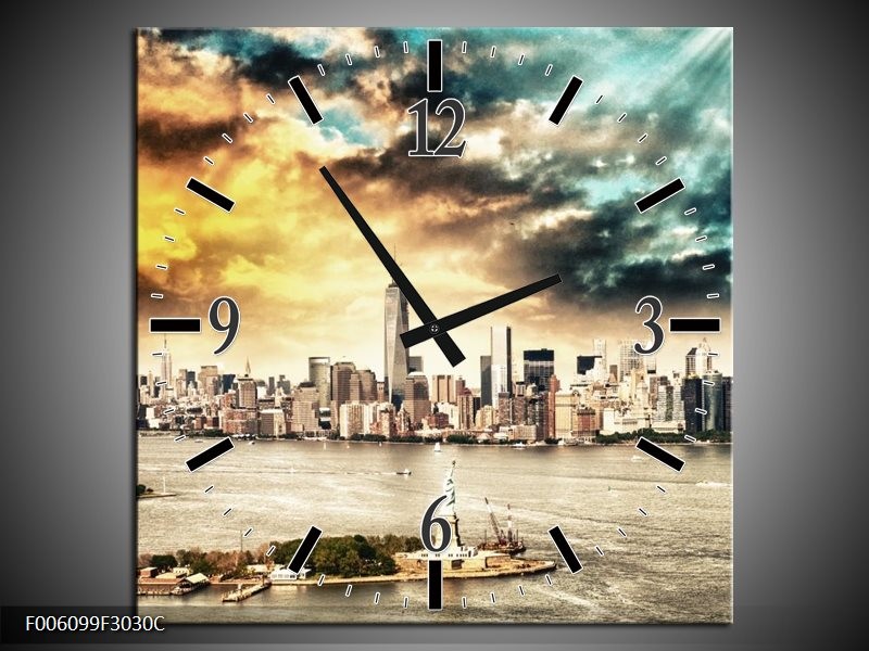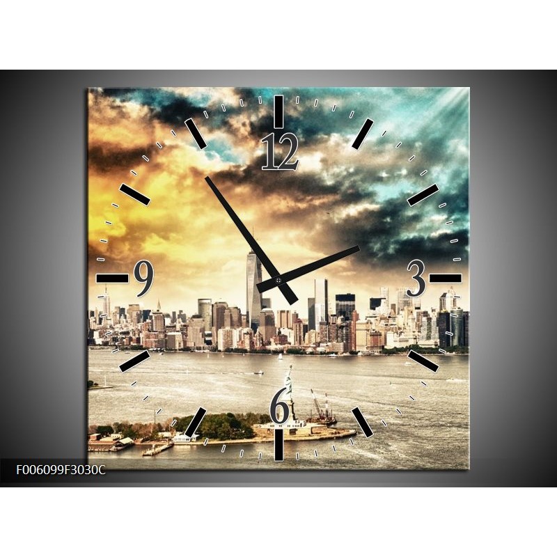 Klok schilderij Wolkenkrabber | Geel, Groen, Grijs | 30x30cm 1Luik