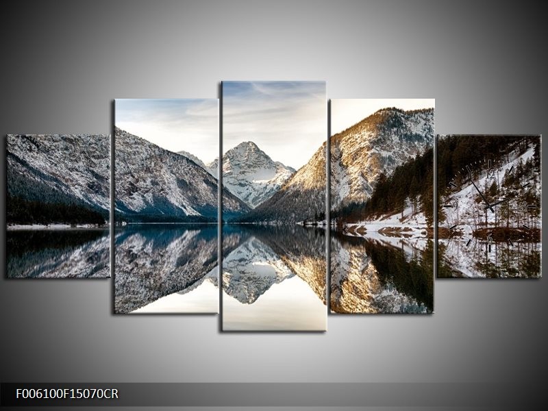 Klok schilderij Bergen | Grijs, Blauw | 150x70cm 5Luik