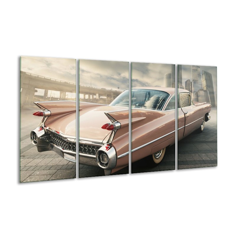 Glas schilderij Oldtimer | Bruin, Grijs | 160x80cm 4Luik