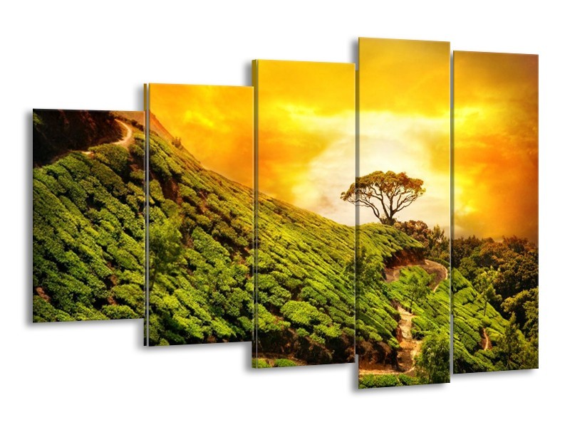 Canvas schilderij Natuur | Groen, Oranje, Geel | 150x100cm 5Luik