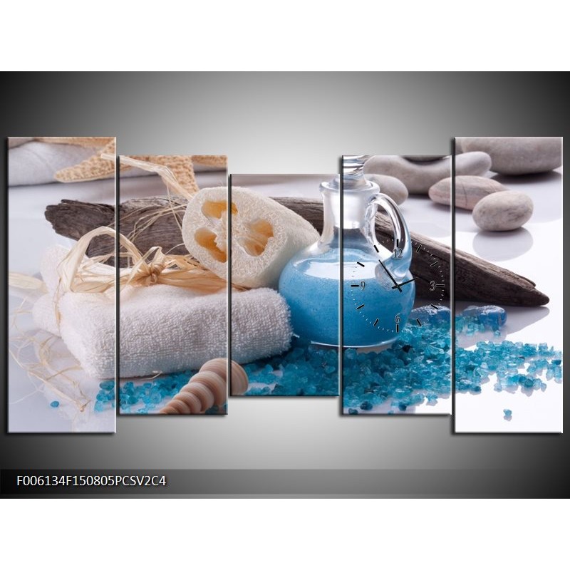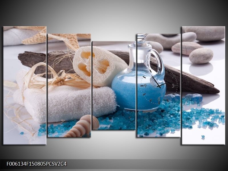 Klok schilderij Spa | Blauw, Wit | 150x80cm 5Luik