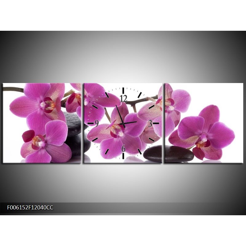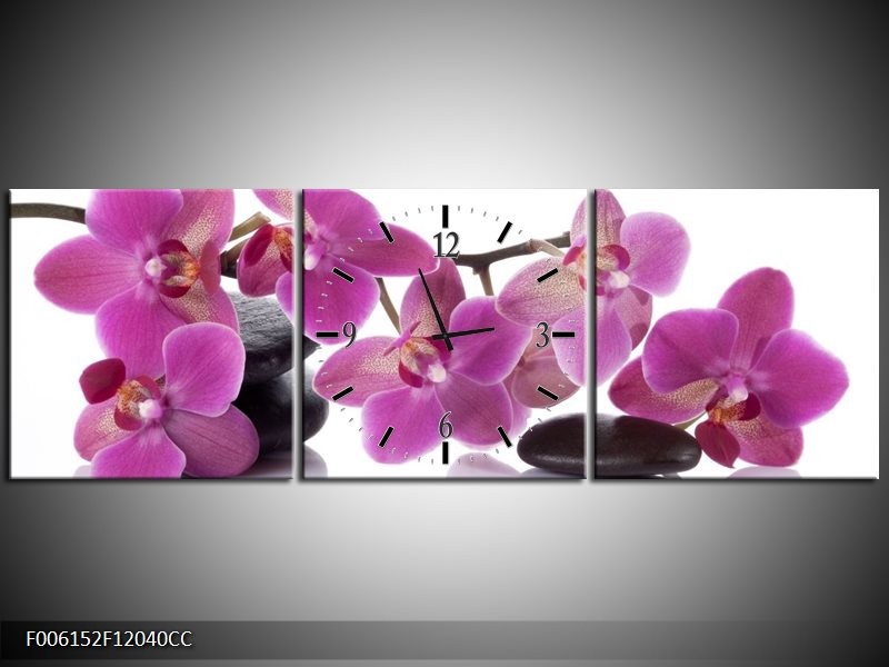 Klok schilderij Orchidee | Paars, Wit | 120x40cm 3Luik