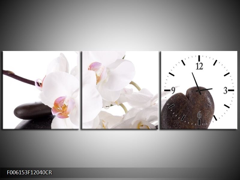 Klok schilderij Orchidee | Wit, Zwart | 120x40cm 3Luik
