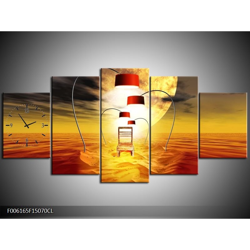 Klok schilderij Modern | Oranje, Rood, Geel | 150x70cm 5Luik