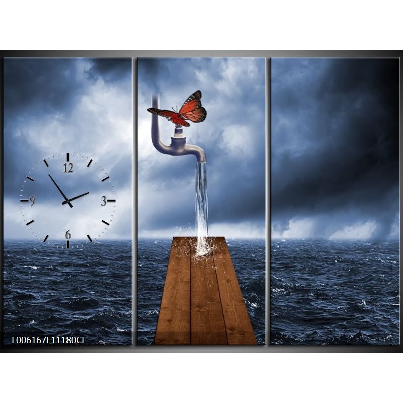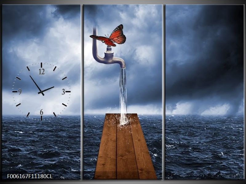 Klok schilderij Modern | Grijs, Rood, Blauw | 111x80cm 3Luik