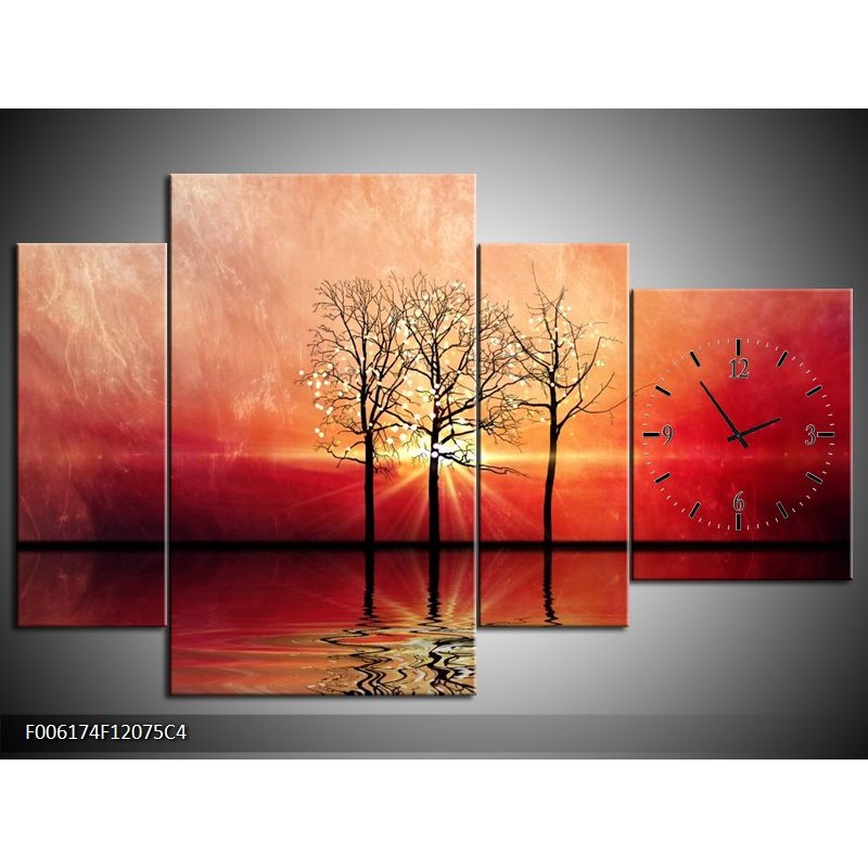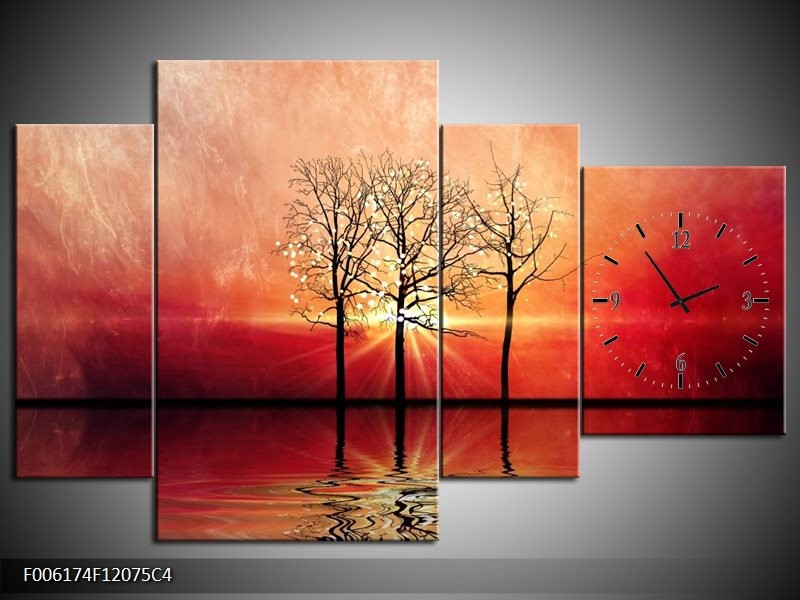 Klok schilderij Abstract | Rood, Geel | 120x75cm 4Luik