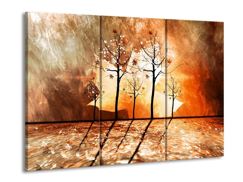 Canvas schilderij Abstract | Bruin, Oranje, Geel | 90x60cm 3Luik