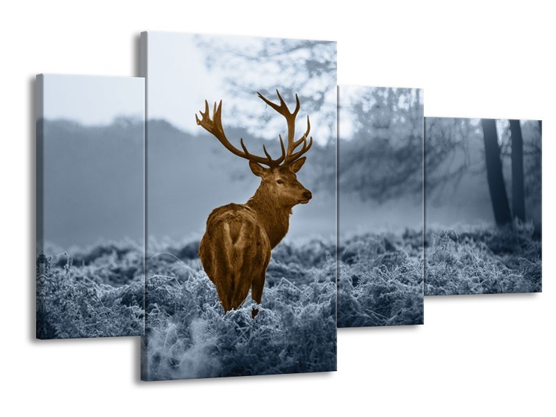 Canvas schilderij Hert | Bruin, Blauw, Grijs | 120x75cm 4Luik