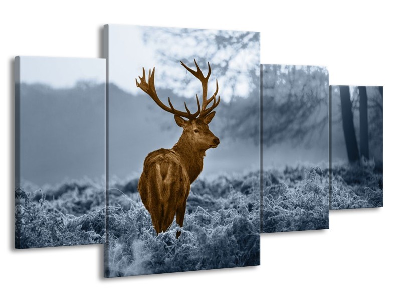 Glas schilderij Hert | Bruin, Blauw, Grijs | 160x90cm 4Luik