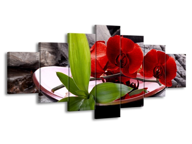 Canvas schilderij Orchidee | Rood, Groen, Grijs | 210x100cm 7Luik