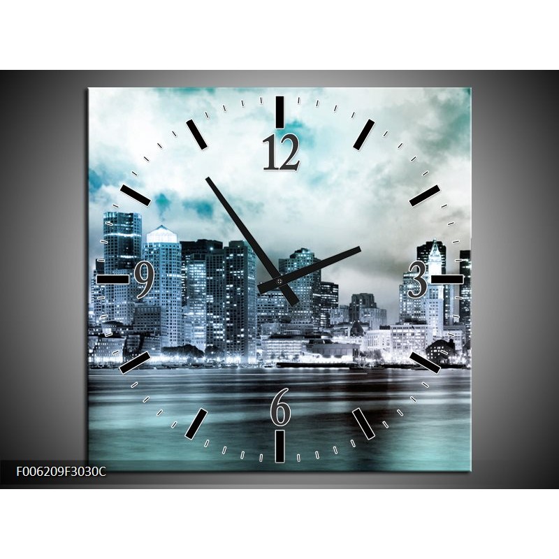 Klok schilderij Wolkenkrabber | Groen, Blauw | 30x30cm 1Luik