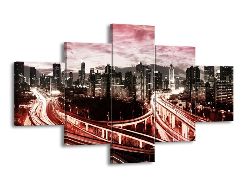 Canvas schilderij Wolkenkrabber | Rood, Roze, Grijs | 125x70cm 5Luik