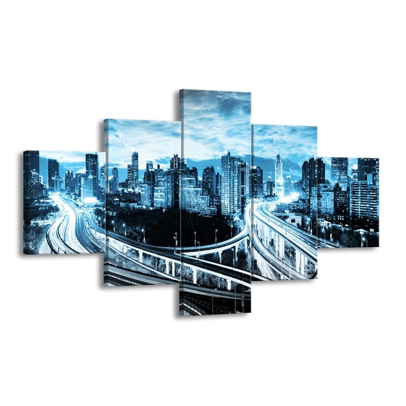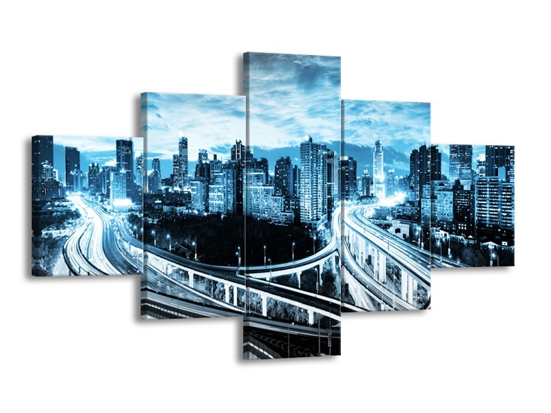 Canvas schilderij Wolkenkrabber | Blauw, Grijs | 125x70cm 5Luik