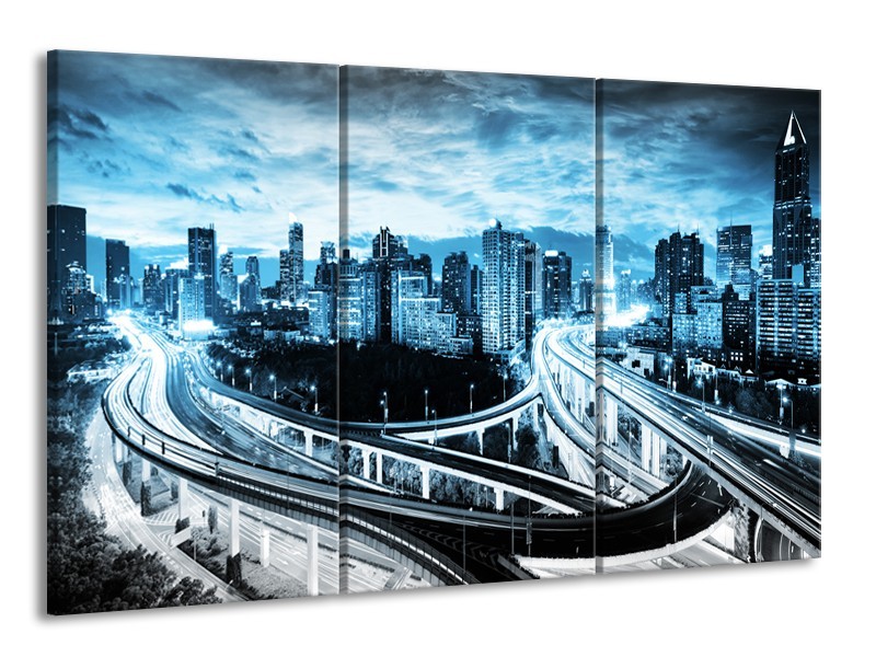 Canvas schilderij Wolkenkrabber | Blauw, Grijs | 165x100cm 3Luik