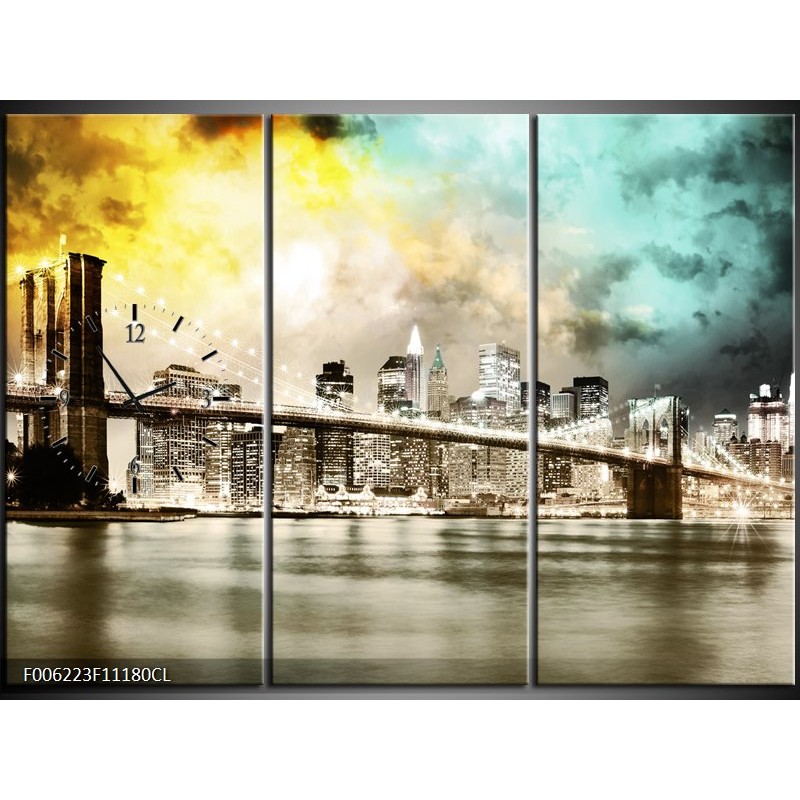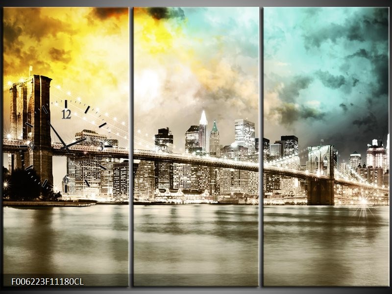 Klok schilderij Brug | Geel, Bruin, Groen | 111x80cm 3Luik