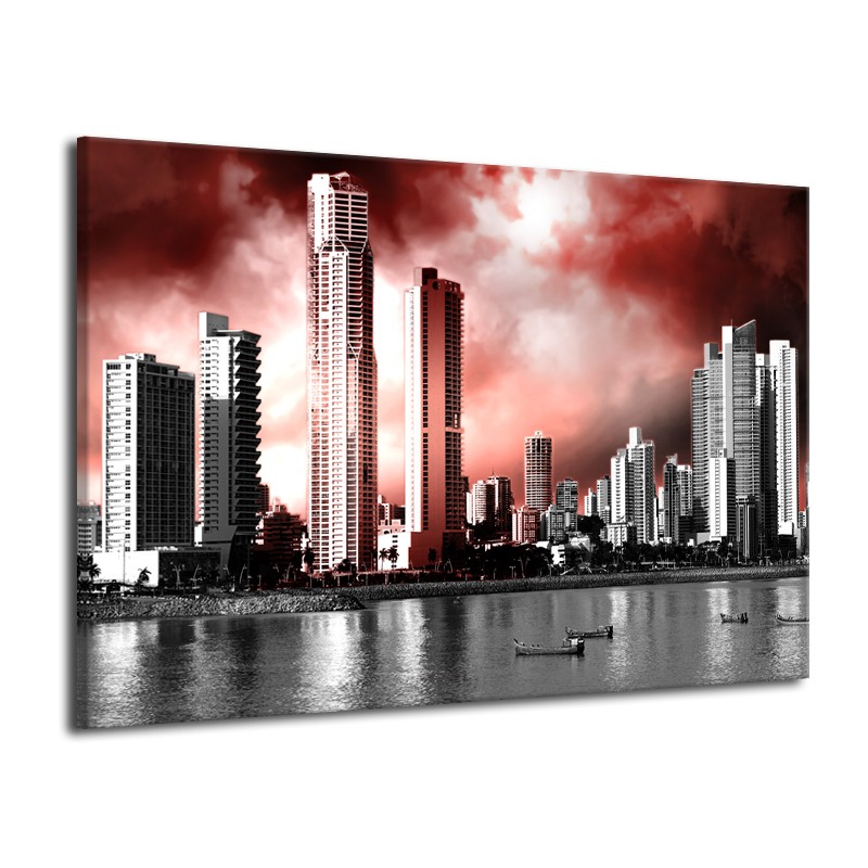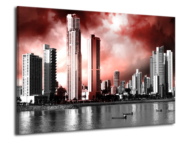 Glas schilderij Wolkenkrabber | Rood, Grijs | 70x50cm 1Luik
