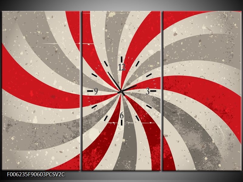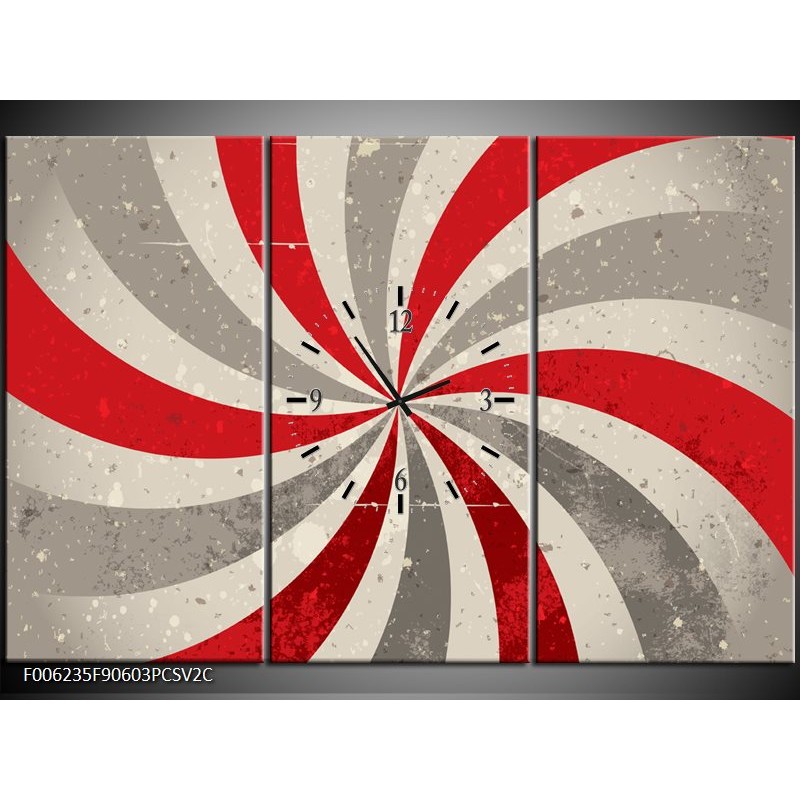 Klok schilderij Abstract | Grijs, Rood | 90x60cm 3Luik