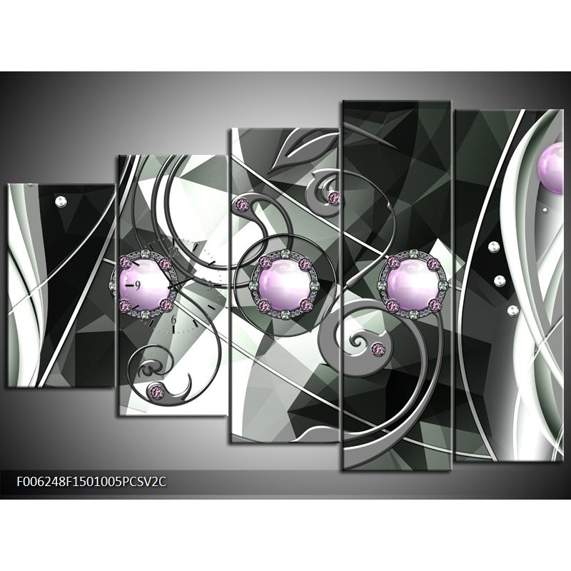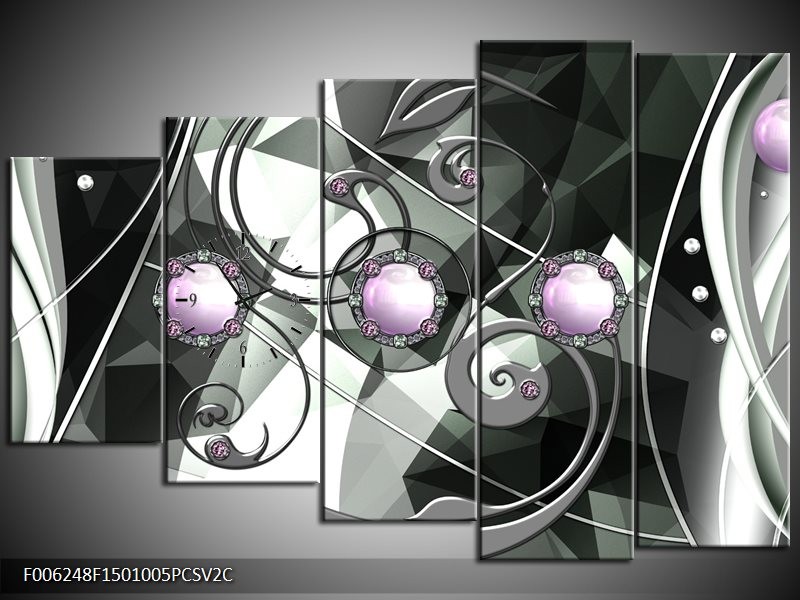 Klok schilderij Modern | Paars, Grijs, Wit | 150x100cm 5Luik