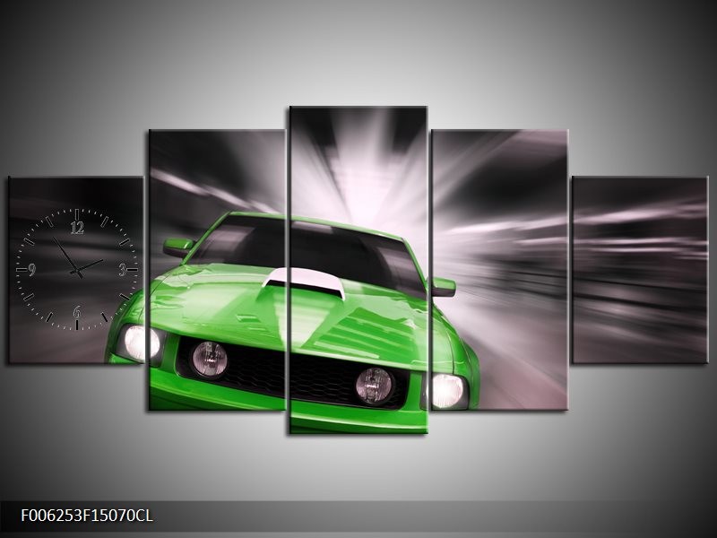 Klok schilderij Mustang | Groen, Grijs | 150x70cm 5Luik