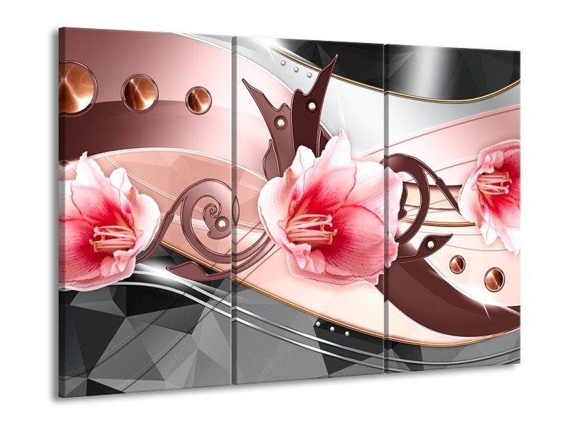 Canvas schilderij Bloem | Roze, Grijs | 90x60cm 3Luik