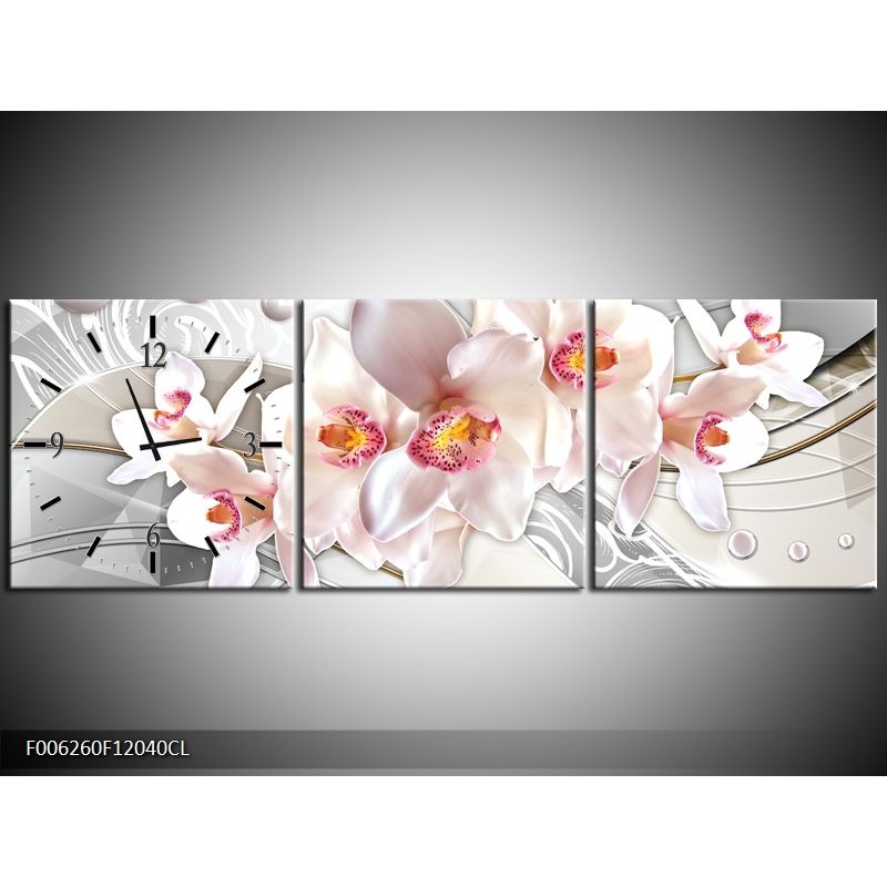 Klok schilderij Orchidee | Grijs, Roze | 120x40cm 3Luik