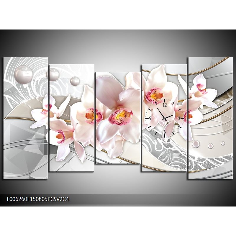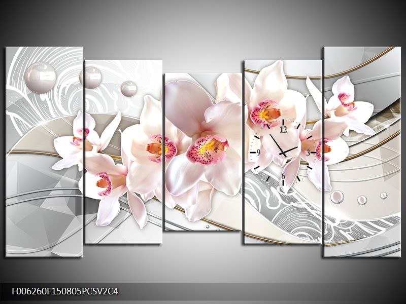 Klok schilderij Orchidee | Grijs, Roze | 150x80cm 5Luik