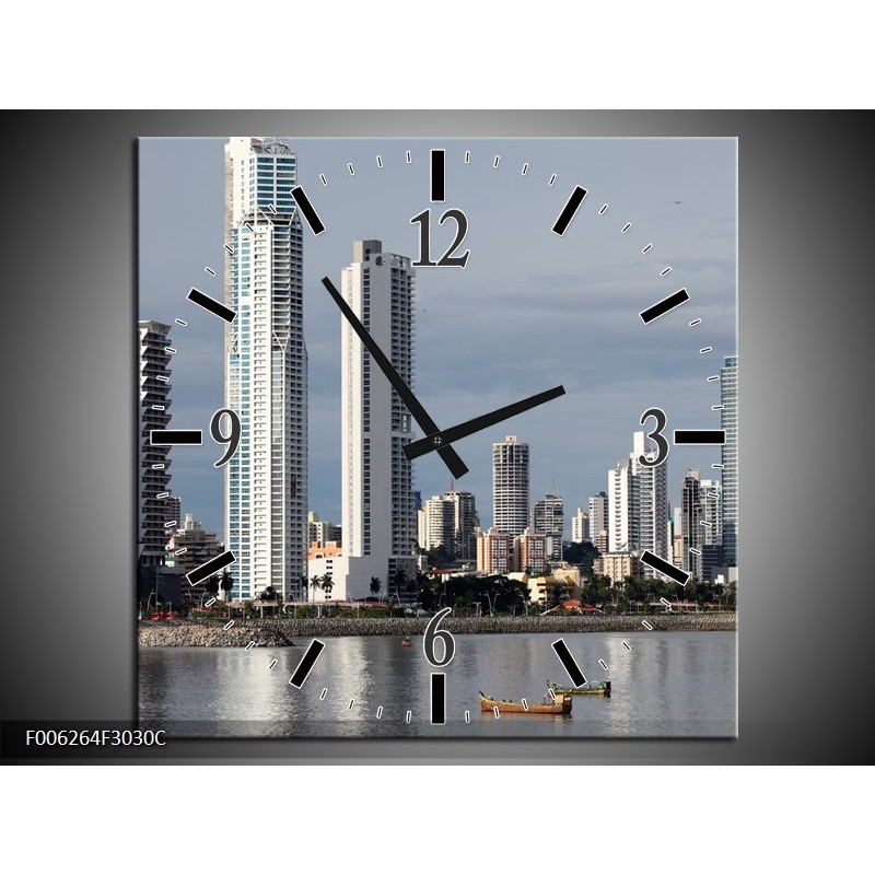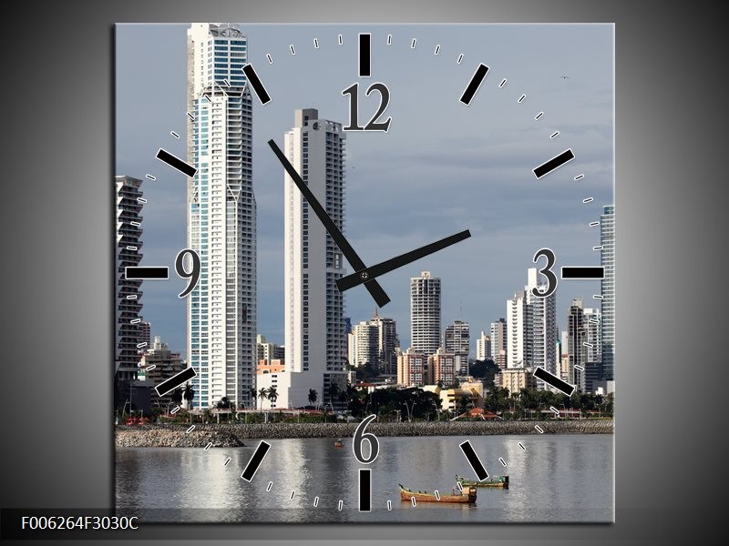 Klok schilderij Wolkenkrabber | Grijs, Blauw | 30x30cm 1Luik
