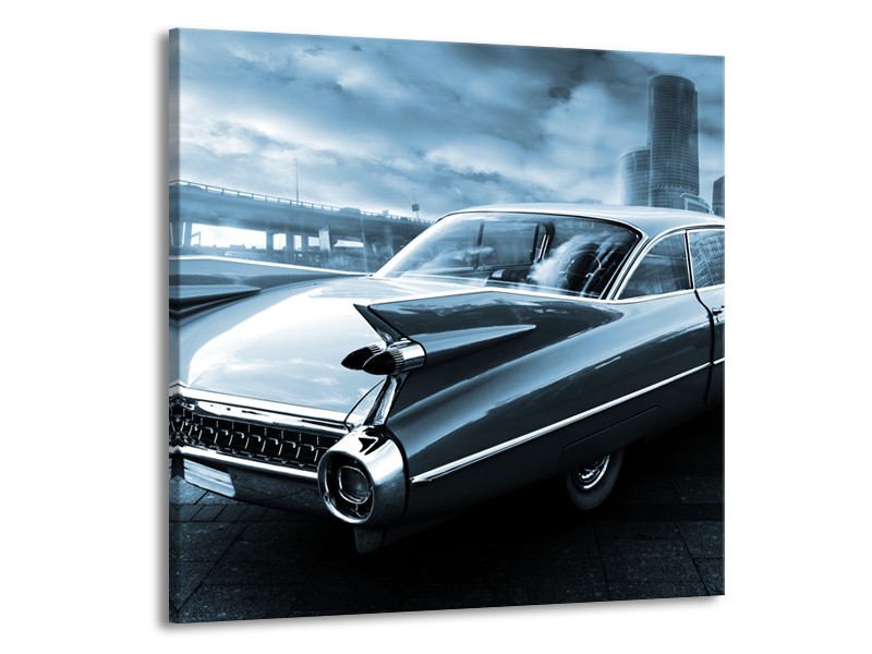 Glasschilderij Auto, Oldtimer | Blauw | 50x50cm 1Luik