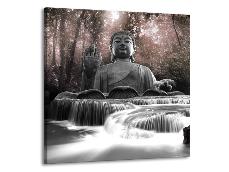 Glasschilderij Boeddha, Natuur | Grijs | 50x50cm 1Luik