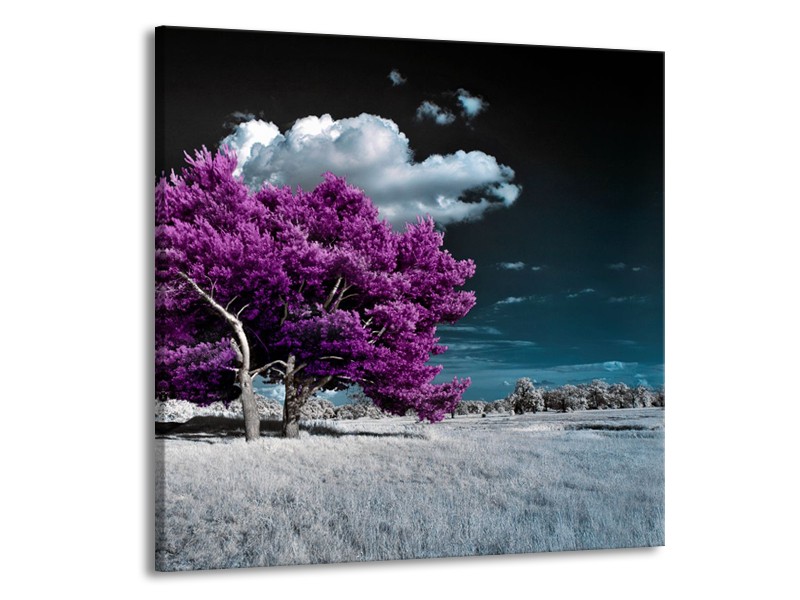 Glasschilderij Boom, Natuur | Paars, Blauw, Grijs | 50x50cm 1Luik