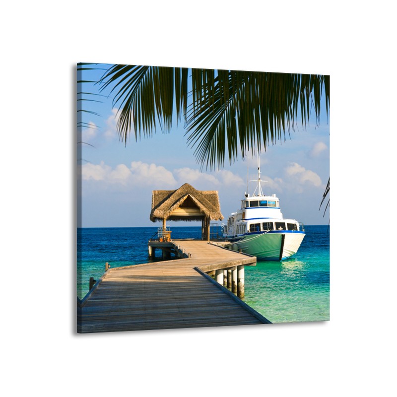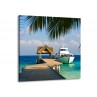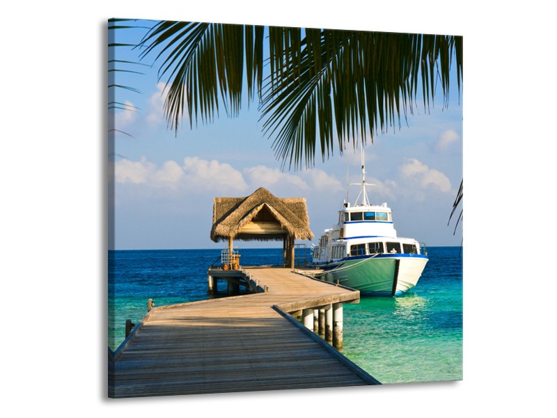 Glasschilderij Boot, Natuur | Groen, Blauw, Turquoise | 50x50cm 1Luik
