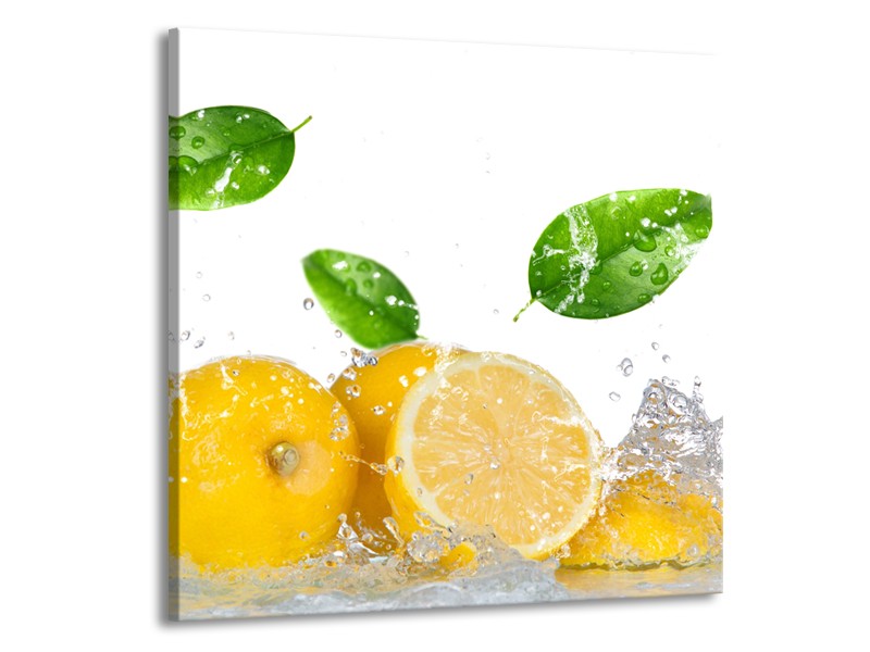 Glasschilderij Citroen, Keuken | Wit, Geel, Groen | 50x50cm 1Luik