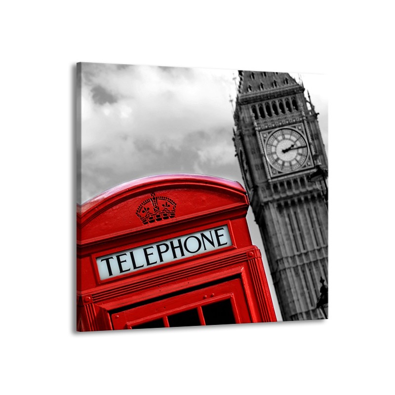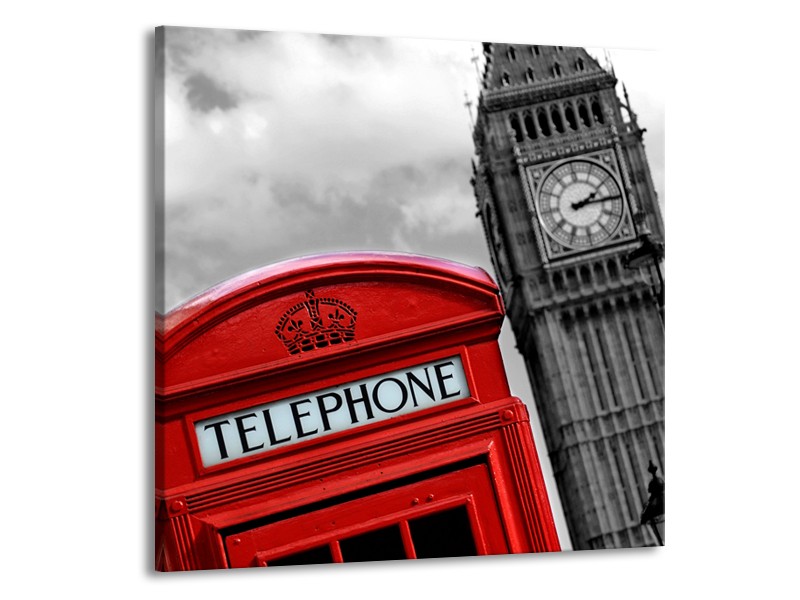 Glasschilderij Engeland, London | Zwart, Wit, Rood | 50x50cm 1Luik
