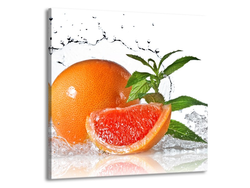 Glasschilderij Fruit, Keuken | Oranje, Wit, Groen | 50x50cm 1Luik