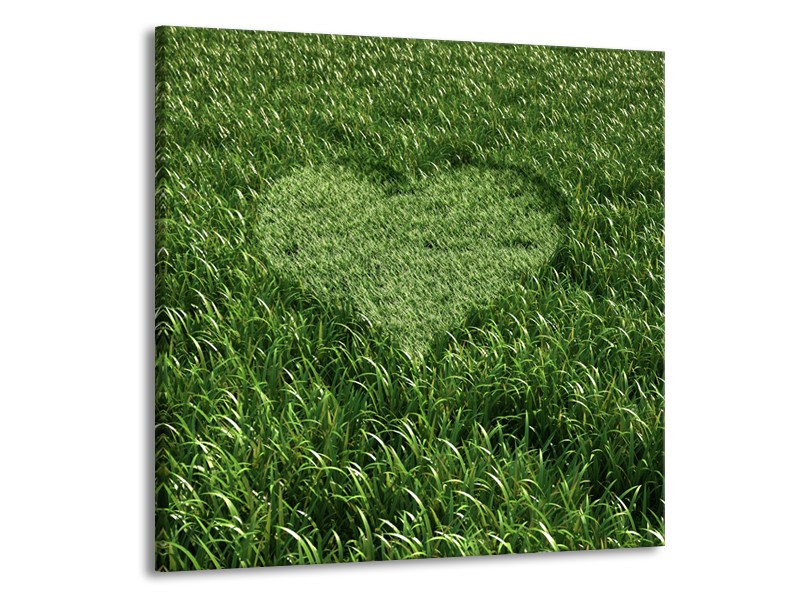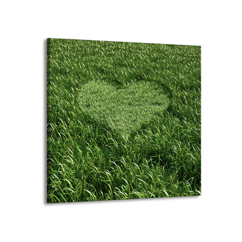 Glasschilderij Gras, Hart | Groen | 50x50cm 1Luik