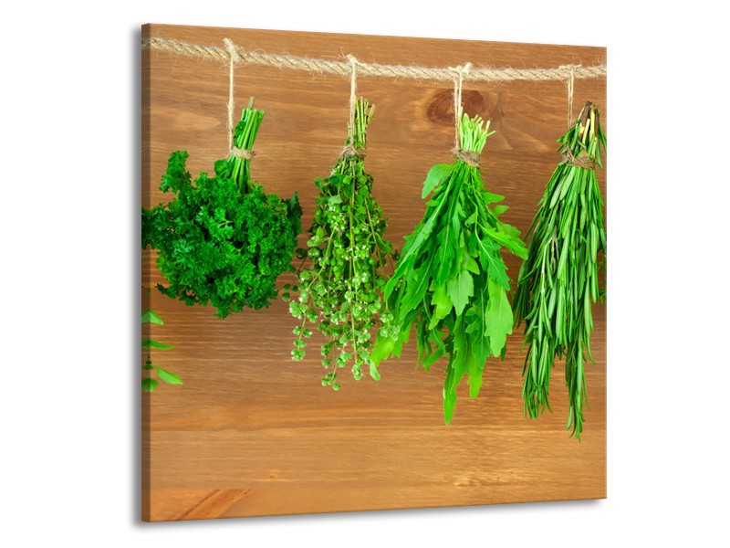 Glasschilderij Kruiden, Landelijk | Bruin, Groen | 50x50cm 1Luik