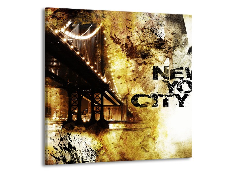 Glasschilderij New York, Modern | Bruin, Zwart, Geel | 50x50cm 1Luik