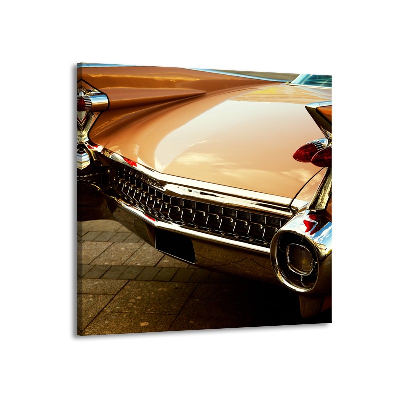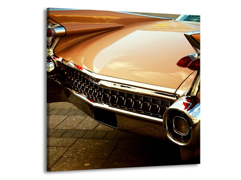 Glasschilderij Oldtimer, Auto | Bruin, Goud, Geel | 50x50cm 1Luik