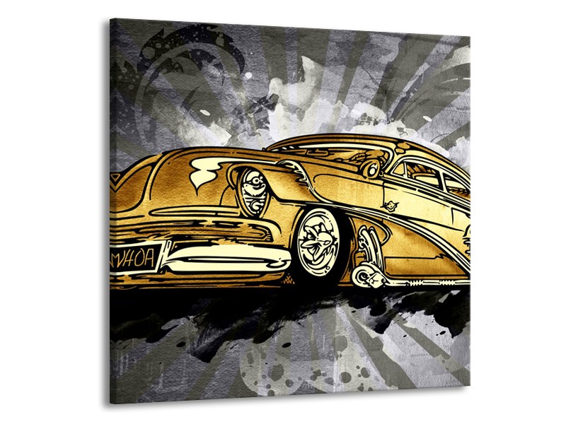 Glasschilderij Oldtimer, Auto | Grijs, Geel, Goud | 50x50cm 1Luik
